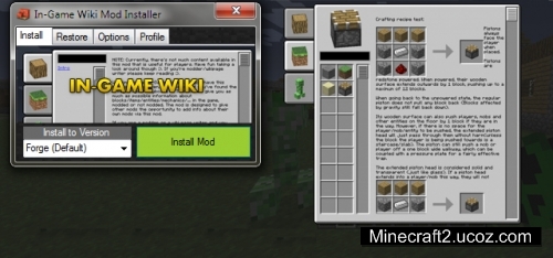 С этим модов в игре появится новый графический интерфейс, который будет содержать в себе страницы Майнкрафт Вики, чтобы его открыть используйте кнпоку i.