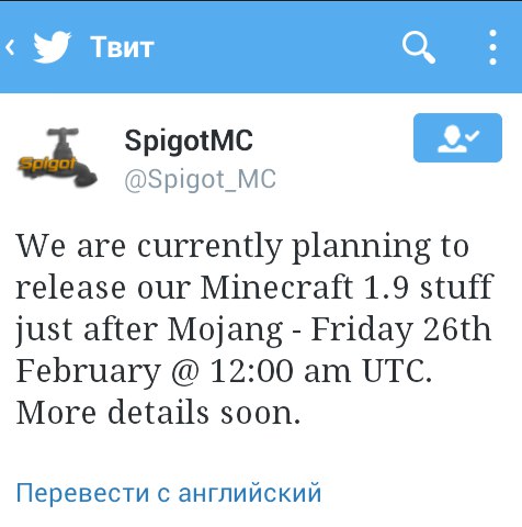 08:57 О том, что Spigot 1.9 выйдет 26 февраля | |